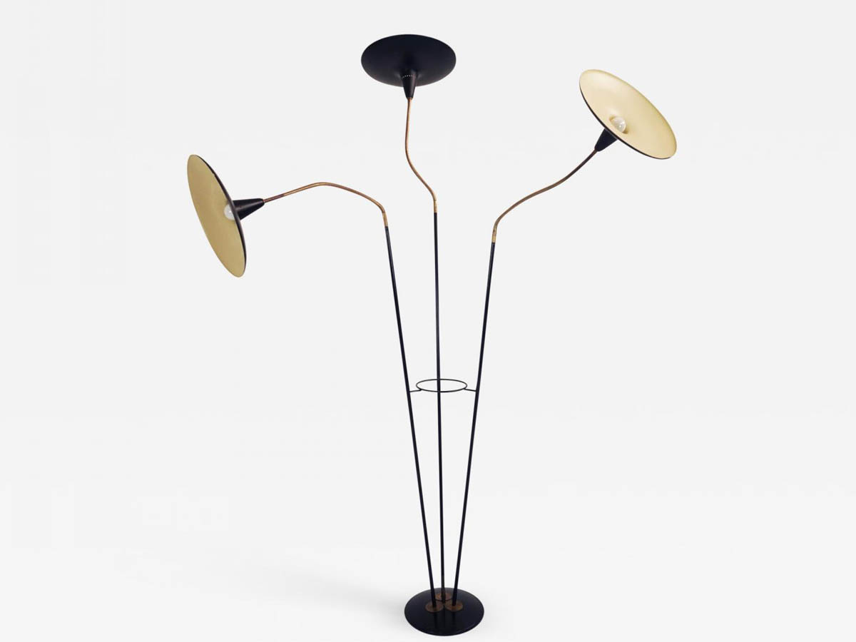 Glänzende Stehleuchte mit Rohseiden-Lampenschirm