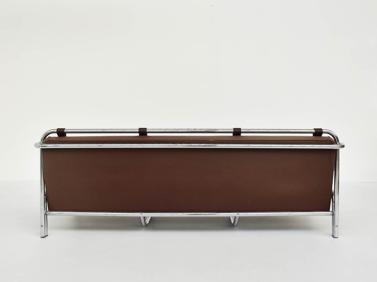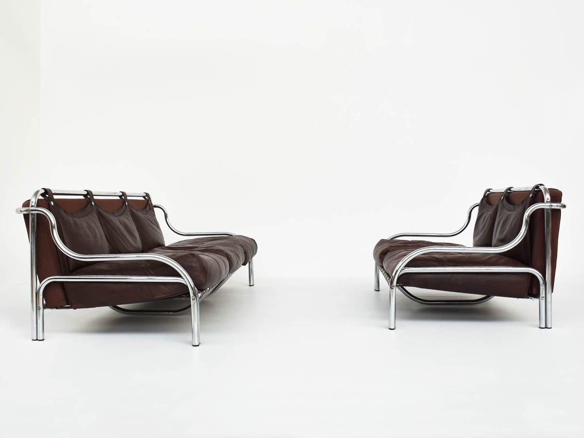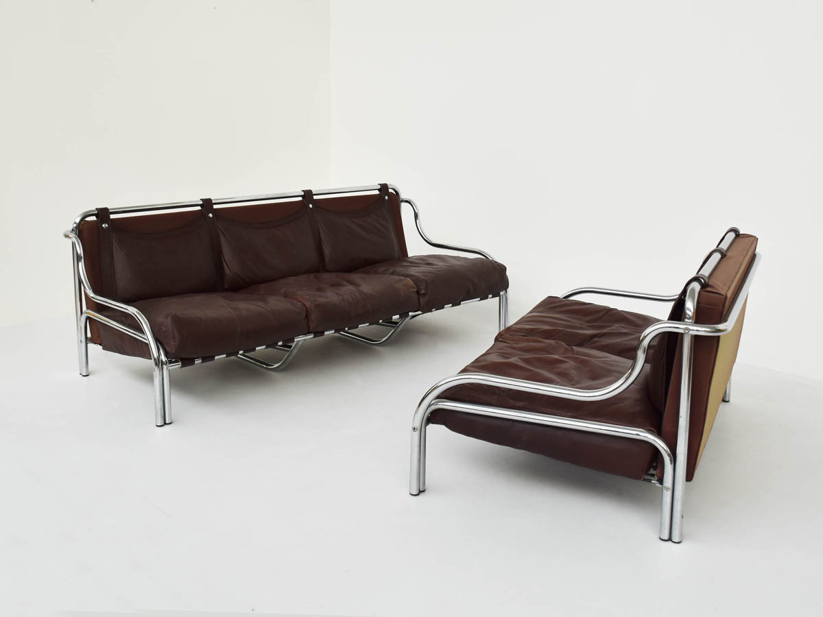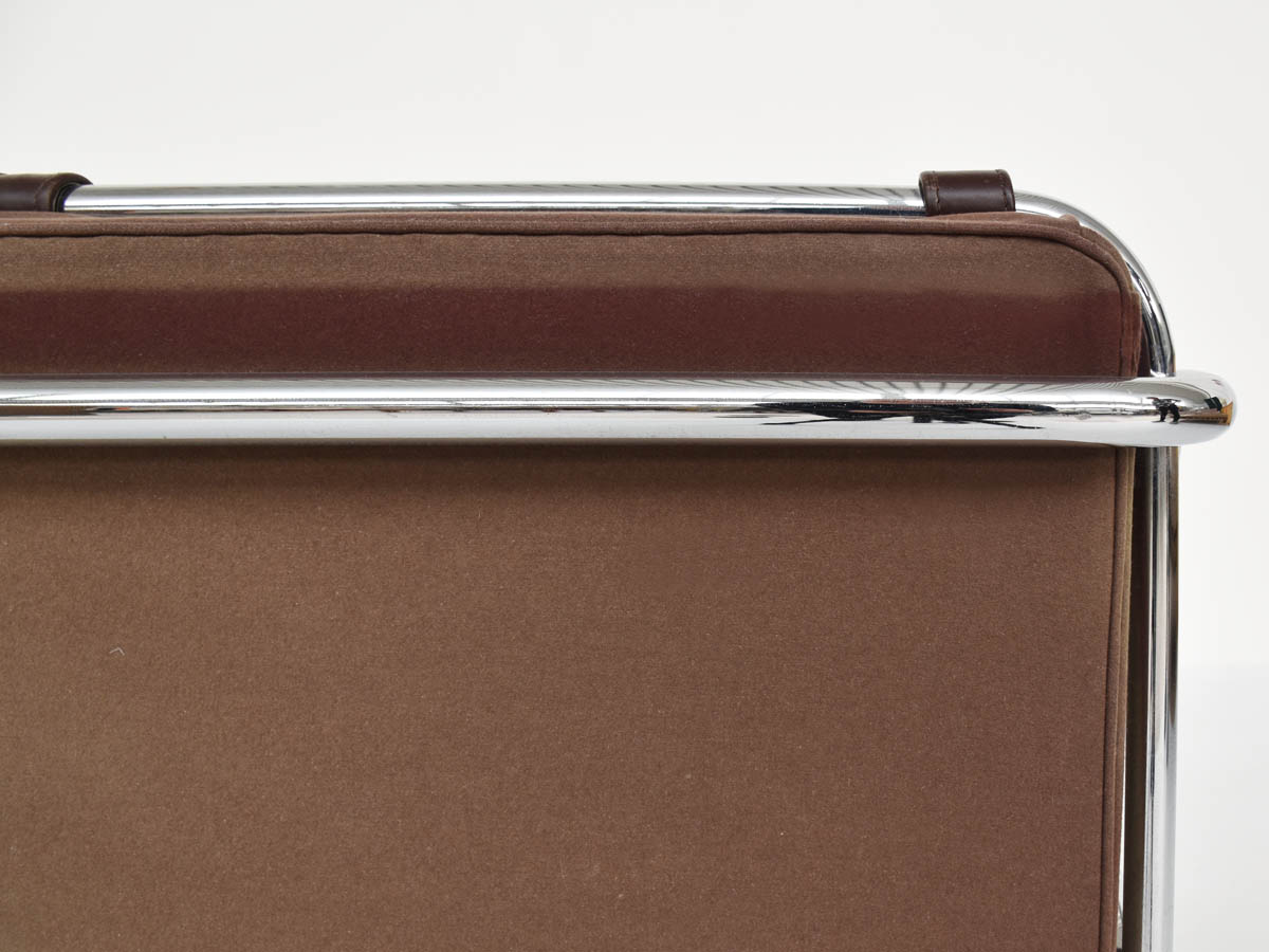 Patinaleder | verchromtes Metall | Filz | Polsterung