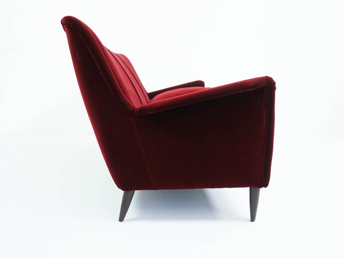 | Materialien | Vollständig mit hochwertigem dunkelrotem Samt bezogen, mit neuen Daunenkissen. |