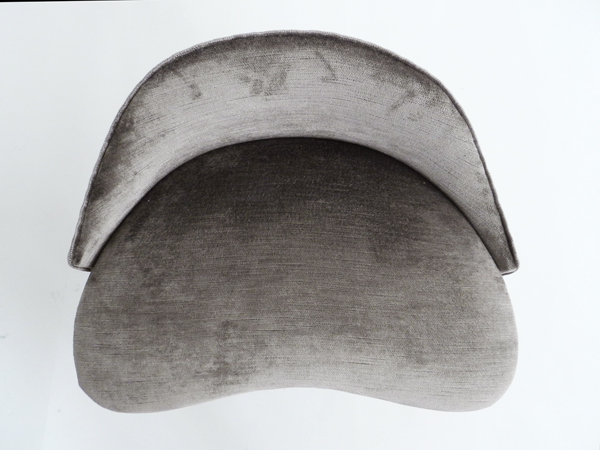 Painted wood, brass, completely re-upholstered new cover in light gray velvet