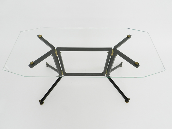 Dimension 100 x 45 x HT. 52,5 cm Glass – brass – lacquered metal