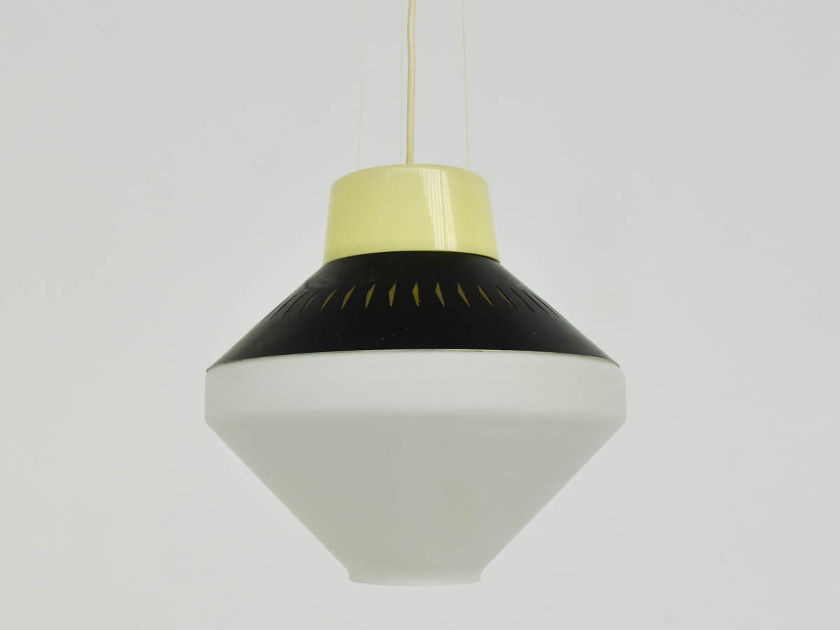| Matériaux | Verre jaune | verre de lait | métal laqué noir | laiton | câbles en plastique transparent |