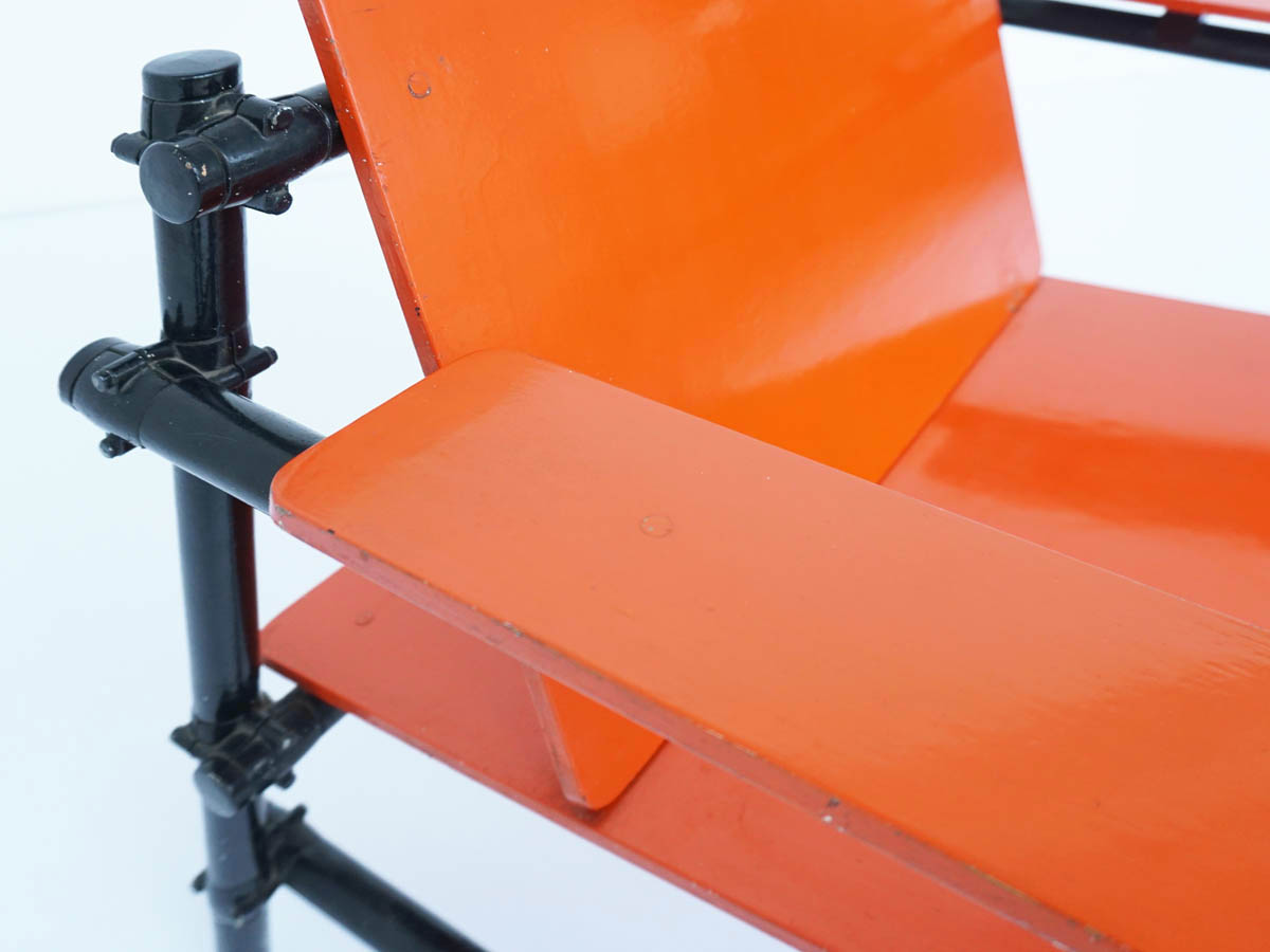 DescrizioneCompensato dipinto di rosso vermiglio, tubo di legno dipinto di nero, metallo