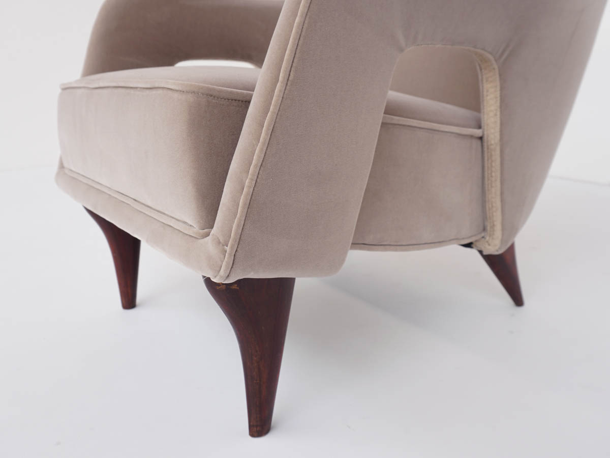 Dove gray velvet | Wood tainted mahogany | Upholstery