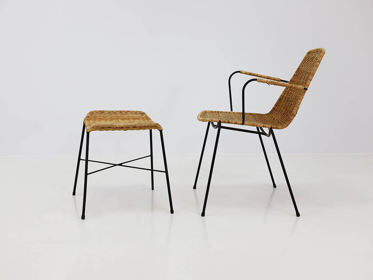The Basket Chair by Gian Franco Legler is one of the most iconic examples of post‑war Italian design. Designed in 1951 for a restaurant in Italy and produced for Bonacina, this stackable chair features a lightweight metal frame and a hand‑woven rattan seat and backrest. The Basket Chair received the prestigious Good Design Award from the Museum of Modern Art (MoMA) in New York in 1953, cementing its status as a design classic appreciated in both residential and hospitality settings worldwide.