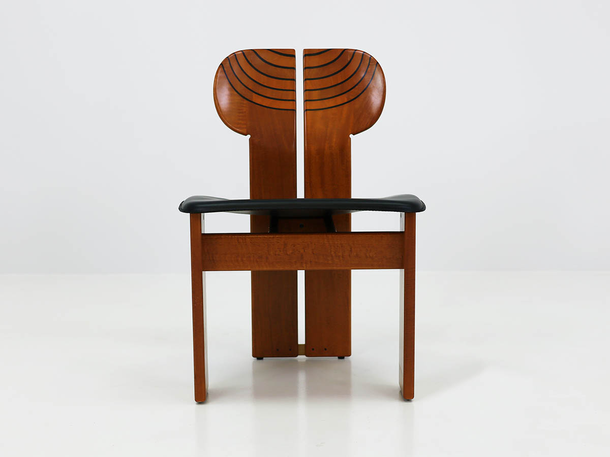 Defined by elegant proportions, structural clarity, and finely crafted wood construction, the Africa chairs by Maxalto, first edition, perfectly express the Scarpa vision of luxury: an essential and timeless design that merges functionality, comfort, and sculptural presence.