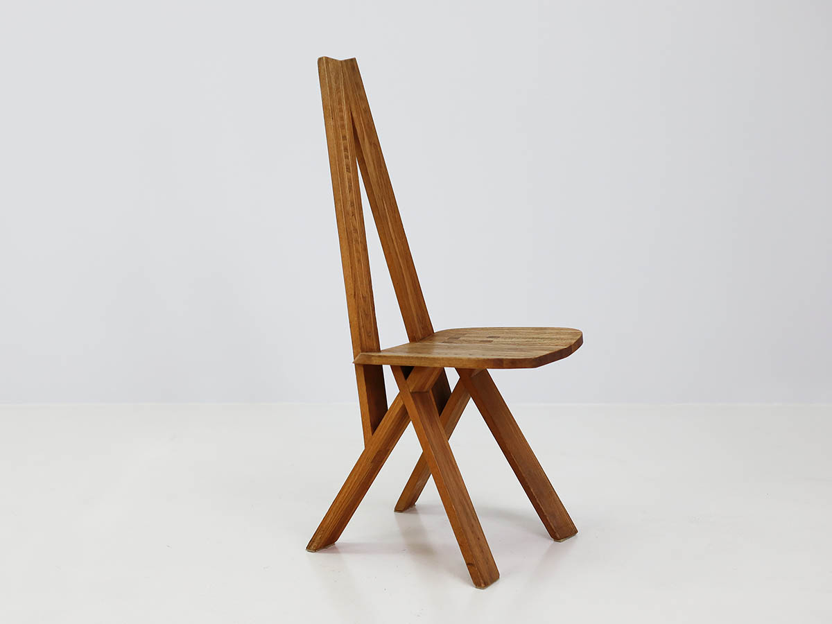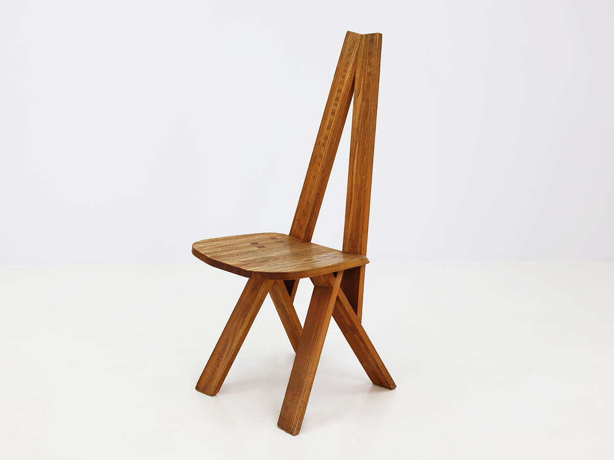 Also of great importance is the S45 chair, designed around 1968, which represents a key moment in the evolution of Chapo’s seating design in solid wood. The S45 combines generous proportions with strict structural logic and exposed joints, achieving a balance between comfort and architectural rigor. This model highlights the designer’s ability to create functional seating with a strong sculptural presence.