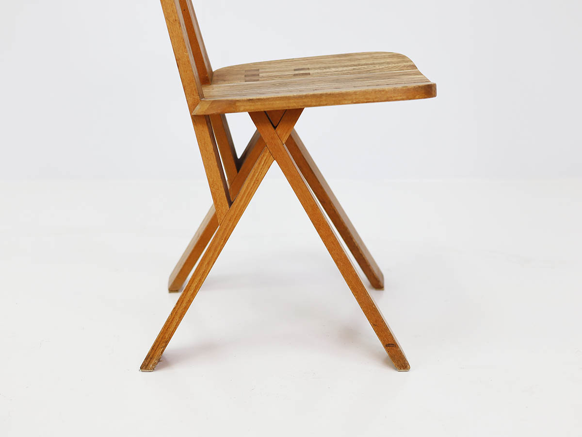 Among his most representative works is the S31A stool, designed in 1974, which perfectly expresses Chapo’s exploration of structural essentialism. With its solid three-leg base and visible joinery, the S31A combines stability, functionality, and formal purity. Crafted from solid wood, it fully embodies the designer’s philosophy: eliminate the superfluous and enhance the material through rigorous, durable construction.