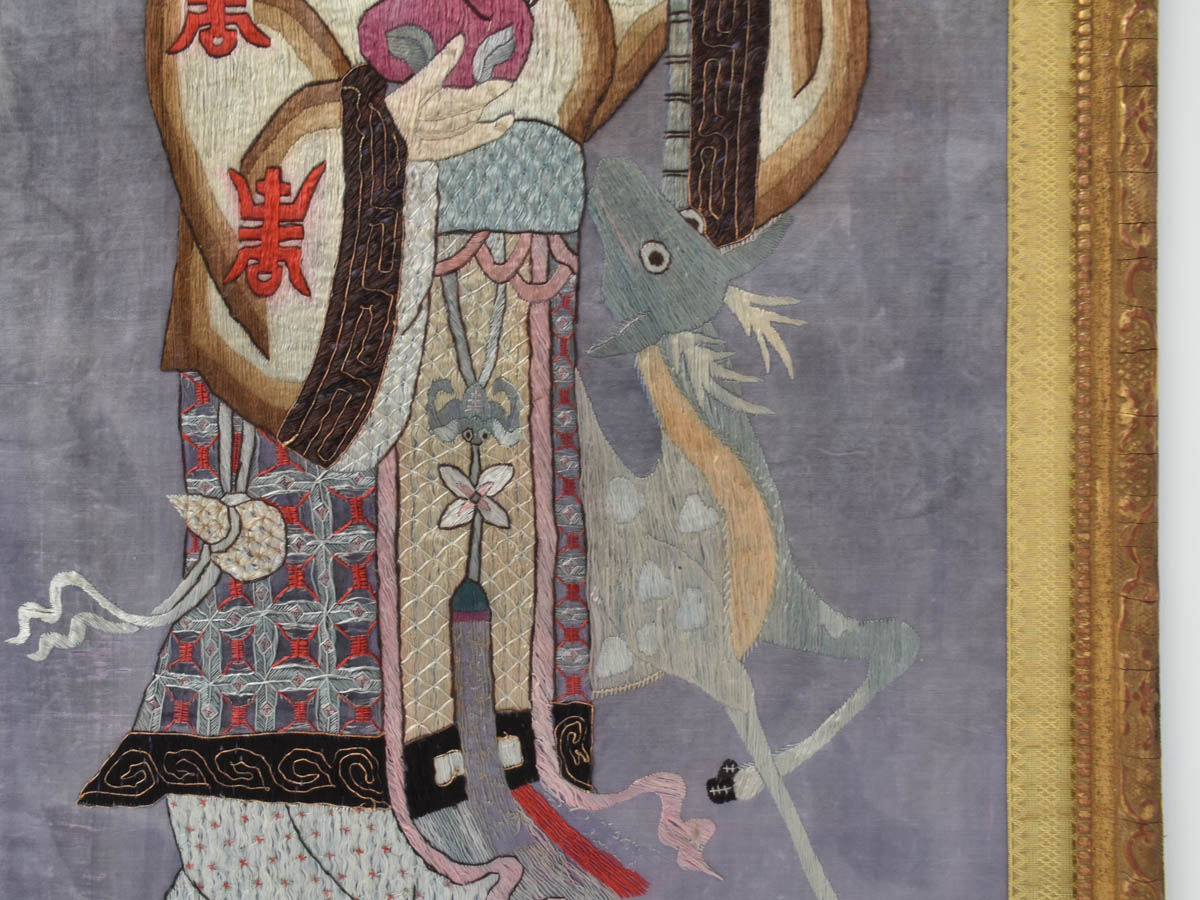 MaterialRaw silk fabric | colored silk threads | wood | carved and gilded wood