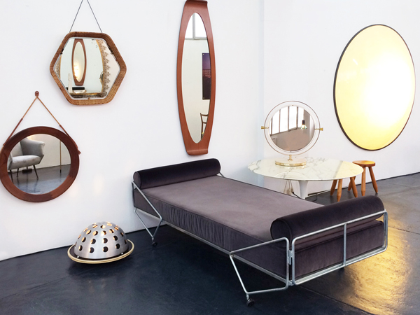 Chrome, nickel plated steel, rubber, with new mattress covered with super elegant mud-gray velvet