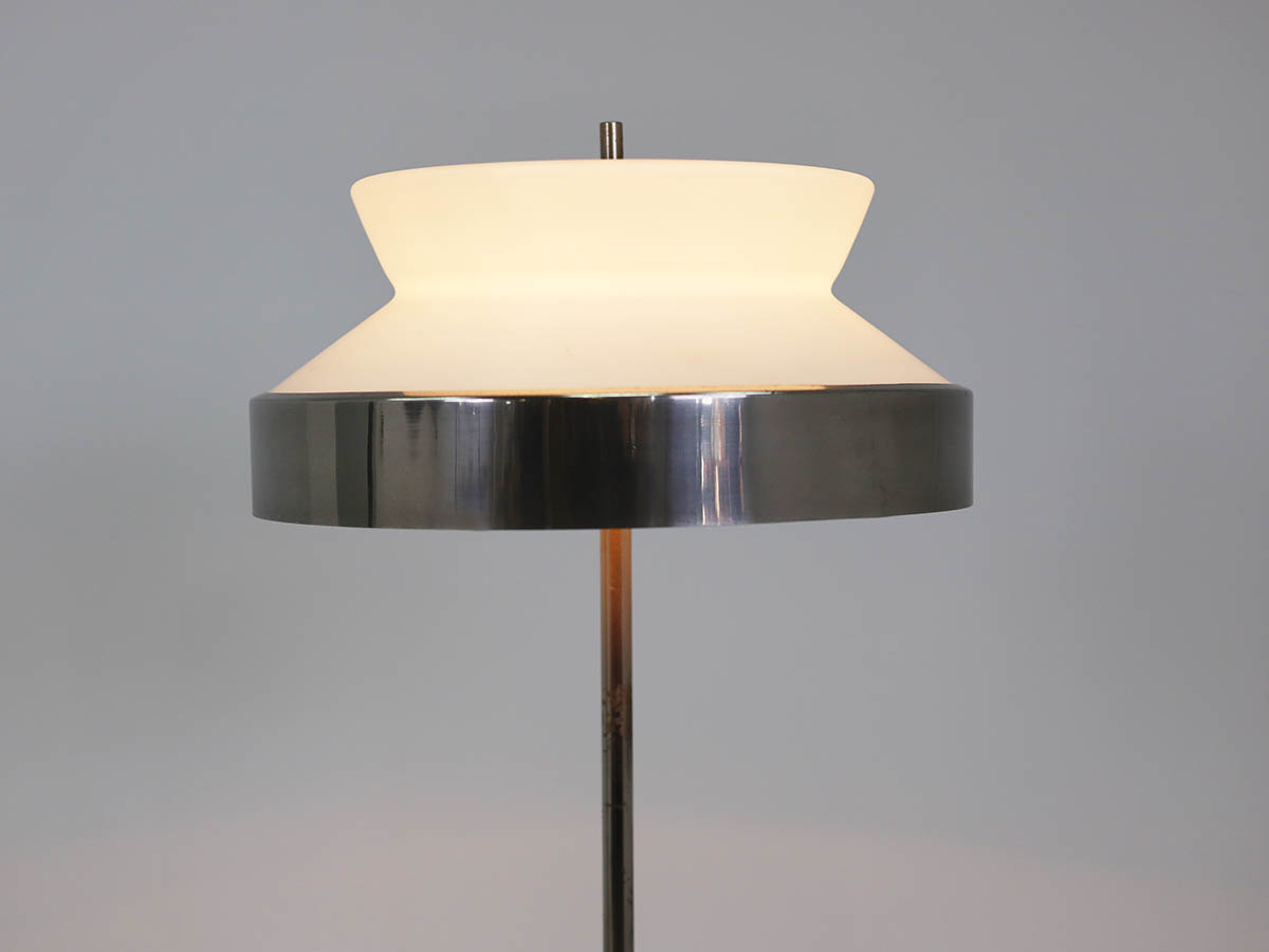 A standout piece in our collection is a lamp attributed to Sergio Asti, featuring a lightweight and linear structure that combines functionality with elegance. The lamp reflects the geometric purity and proportional harmony typical of Asti’s work, making it ideal for modern, minimalist, or mid-century inspired interiors, thanks to its refined aesthetic and strong contemporary identity.