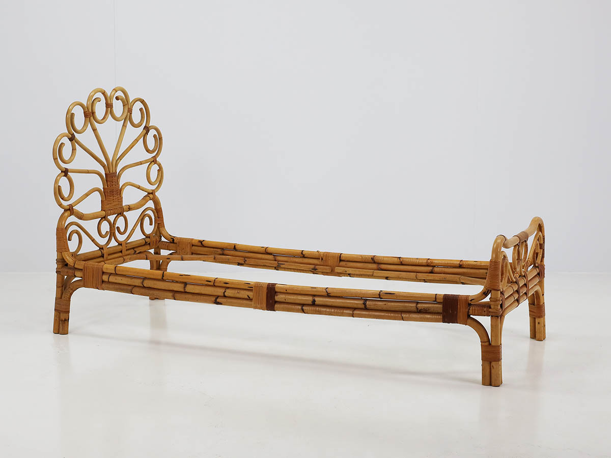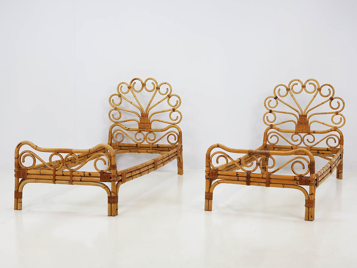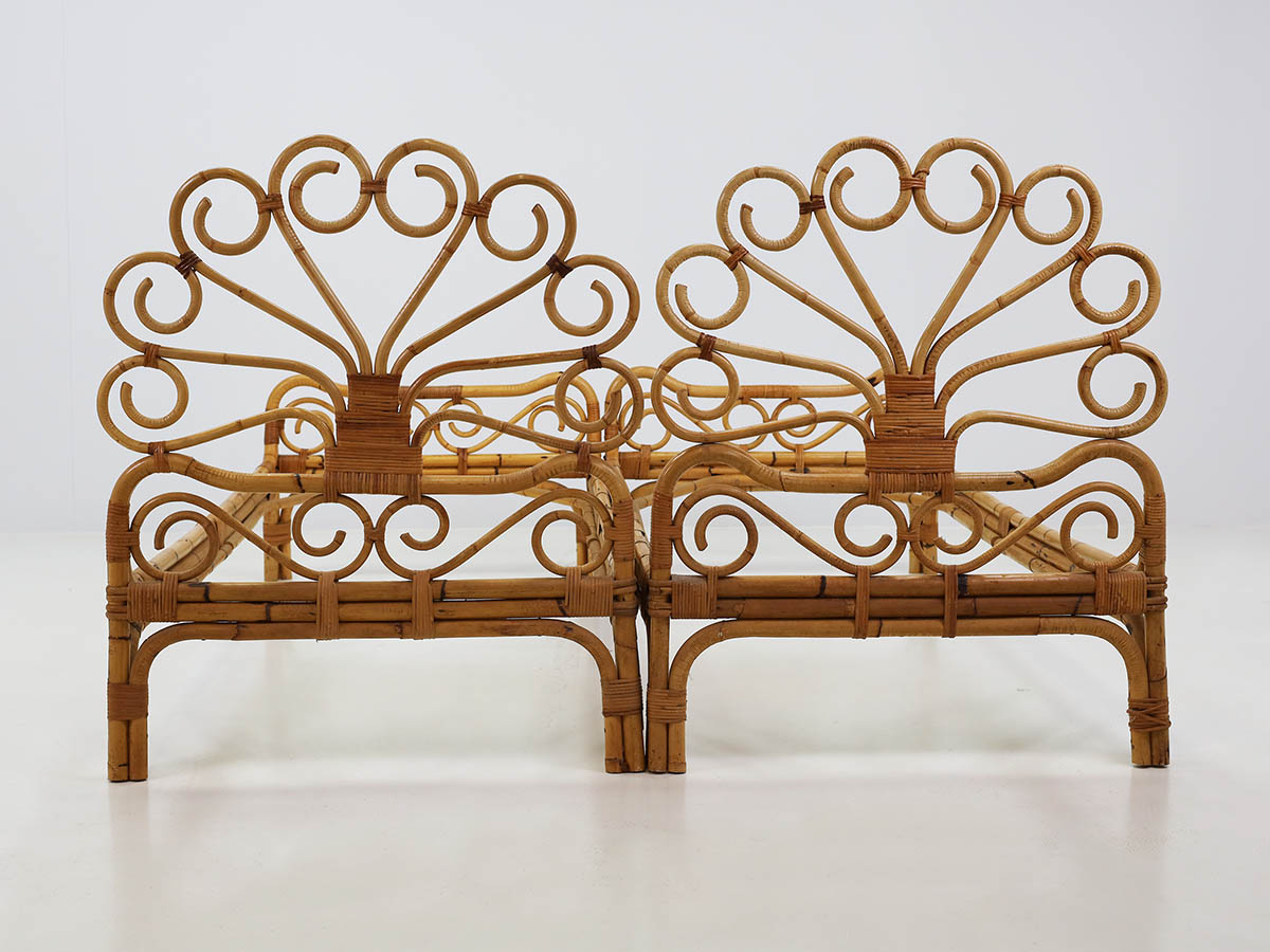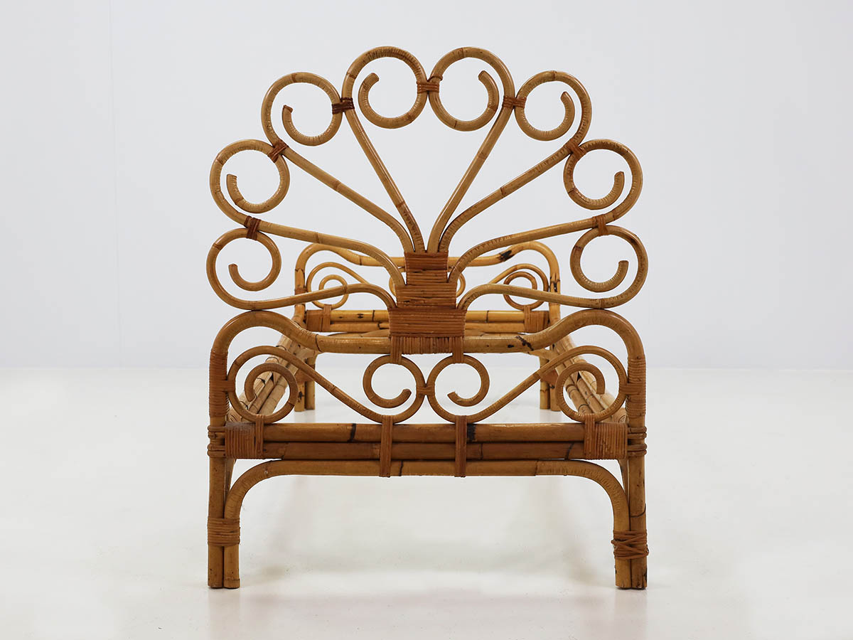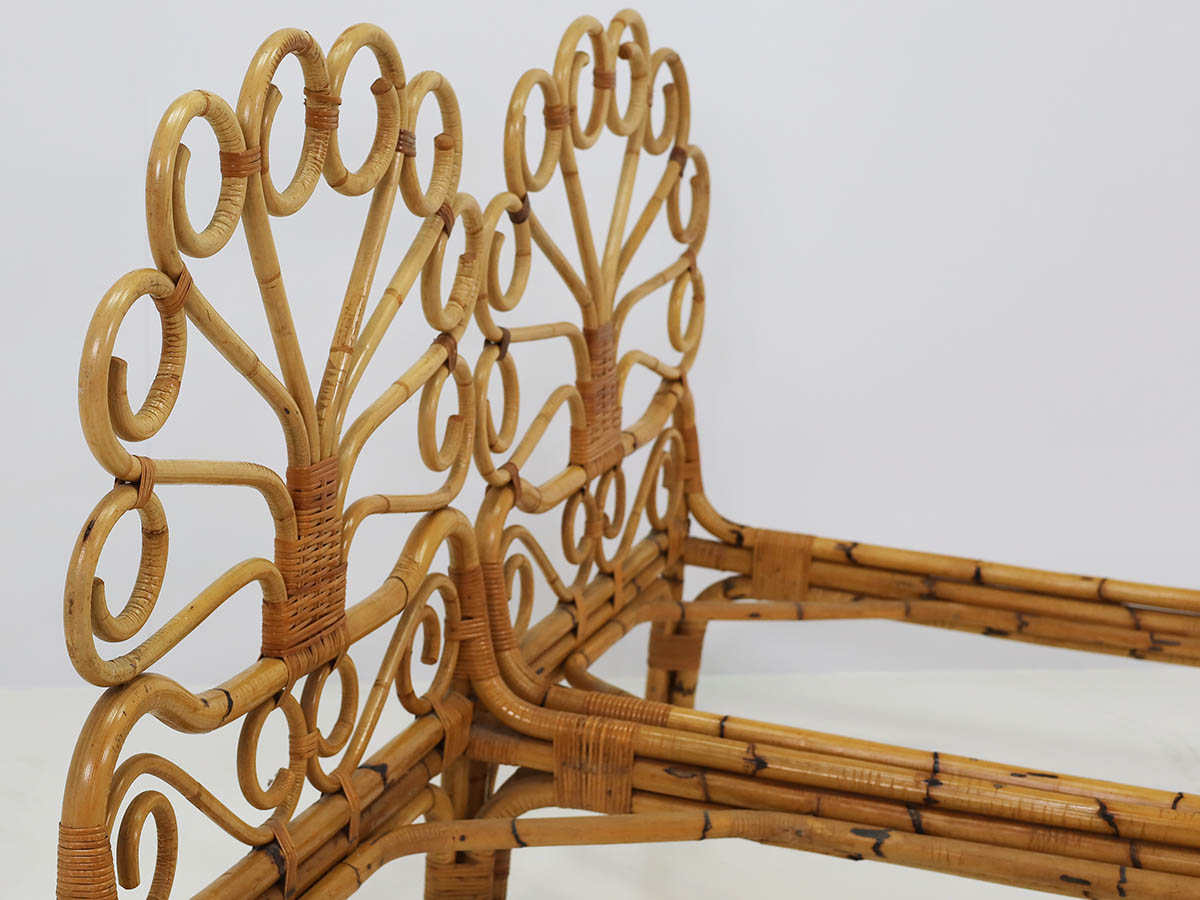 The productions from this period are distinguished by the combined use of bamboo and metal, materials that define a typical Italian mid-century aesthetic. Bamboo was handcrafted using traditional bending and weaving techniques, resulting in chairs, armchairs, and tables with a natural and lightweight character, while metal structures introduced modernity, structural strength, and formal clarity.