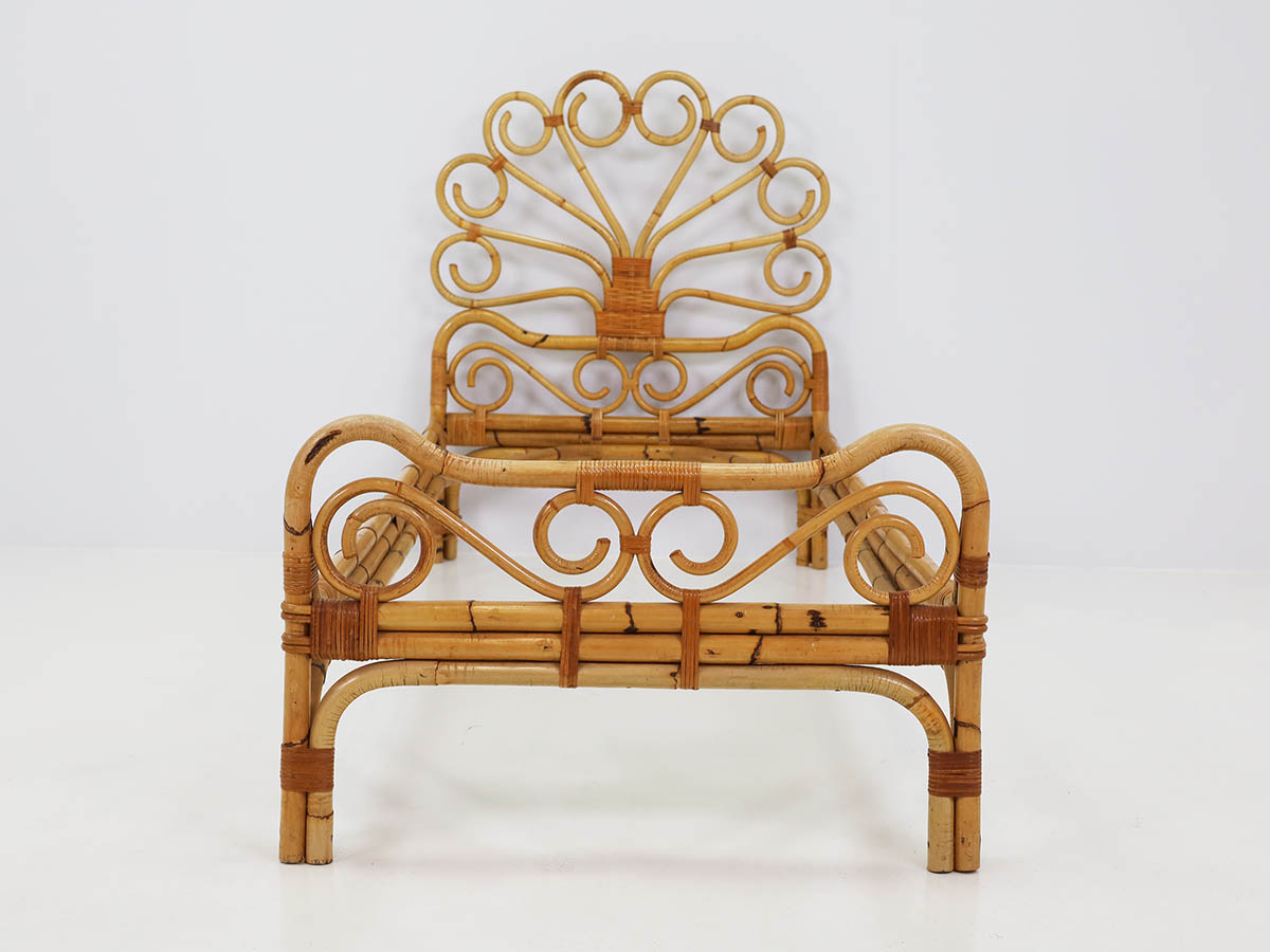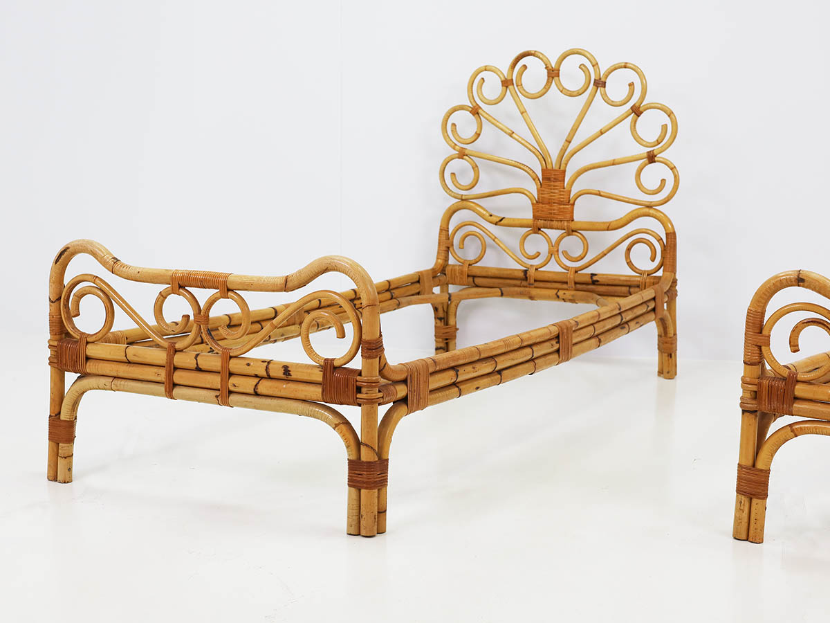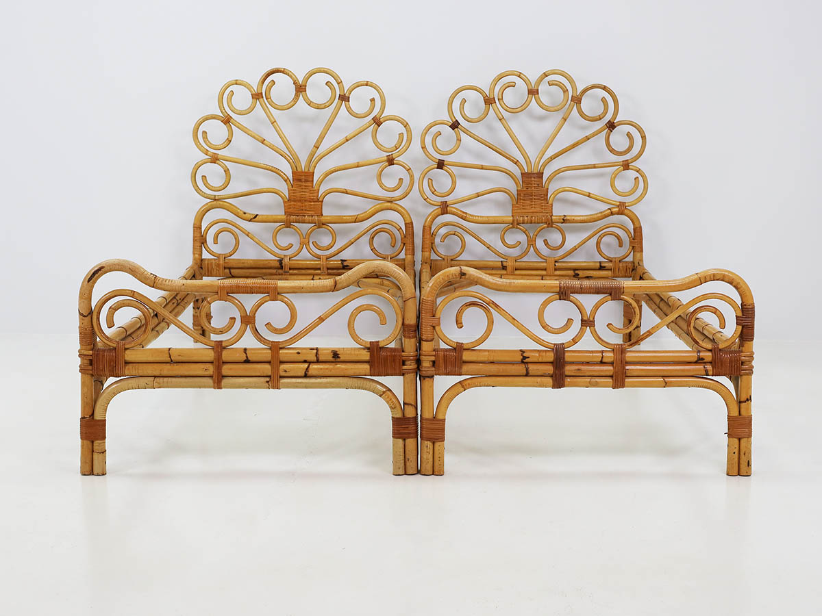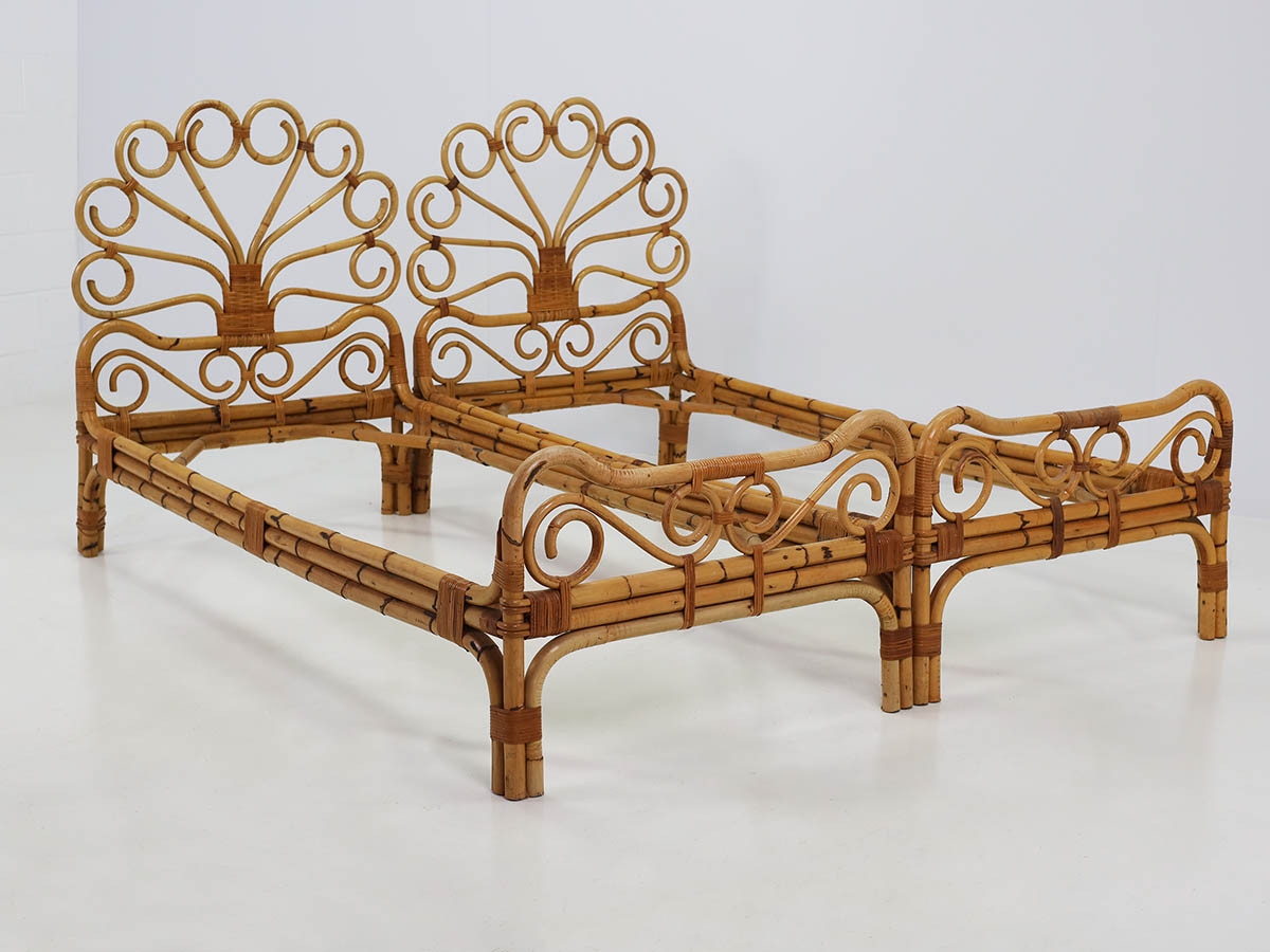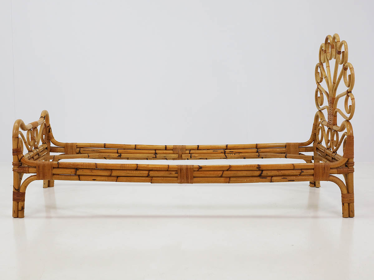 The productions from this period are distinguished by the combined use of bamboo and metal, materials that define a typical Italian mid-century aesthetic. Bamboo was handcrafted using traditional bending and weaving techniques, resulting in chairs, armchairs, and tables with a natural and lightweight character, while metal structures introduced modernity, structural strength, and formal clarity.